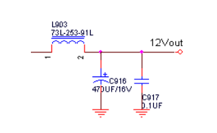 因為輸出攪擾的頻譜相當(dāng)豐富,從幾十赫茲到幾十兆赫茲均含分量。因為在高頻的情況下,濾波電容等效由純電容(C)、等效串聯(lián)電阻(RES)和等效串聯(lián)電感(LES)構(gòu)成的串聯(lián)電路。在作業(yè)頻率f超過電容器的自諧振頻率fr時,電容器就起到電感的作用。值大的濾波電容對低頻攪擾比較敏感,相反,值小的濾波電容吸收高頻攪擾的作用比較好。因此不能光采用大電解電容濾波C916,還有必要加接自諧振頻率很高的陶瓷電容器C917。