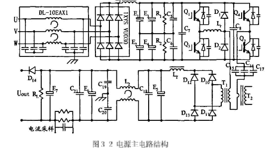 在研討的過程中,主要對大功率開關(guān)直流電源的作業(yè)原理、電路的拓?fù)浣Y(jié)構(gòu)和運(yùn)行形式進(jìn)行了深入研討,并結(jié)合系統(tǒng)的技術(shù)參數(shù),確認(rèn)系統(tǒng)主電路的拓?fù)?,?guī)劃出主電路,即別離規(guī)劃出濾波、整流、DCDC變換器、軟啟動和維護(hù)操控等部分。下面就對電源主電路的規(guī)劃進(jìn)行具體說明。