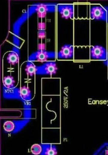 注意這里保險(xiǎn)絲之后,接壓敏電阻VR1再接x2電容的走線,完全是繞了一個彎這是為什么?
