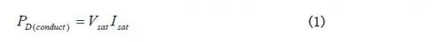 導(dǎo)通損耗可由開關(guān)兩端電壓和電流波形乘積測得。這些波形都近似線性,導(dǎo)通期間的功率損耗由式(1)給出。