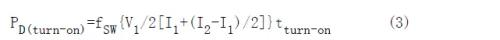 這個結(jié)果只是功率開關(guān)開通期間的損耗值,再加上關(guān)斷和導(dǎo)通損耗可以得到開關(guān)期間的總損耗值。